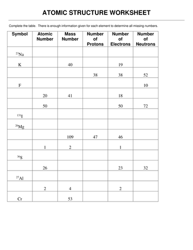 Basic atomic structure worksheet h and the 1. Science 9/ period 11 chapter 19. Atomic structure worksheet this worksheet is used to have students practice identifying atomic structure. 29/10/2018 03/09/2019 · worksheet by lucas kaufmann. The number of protons in.